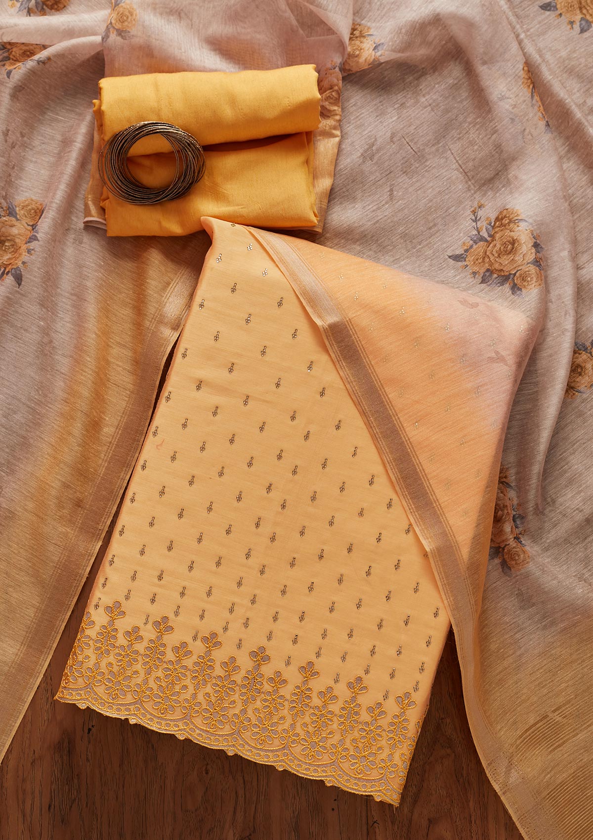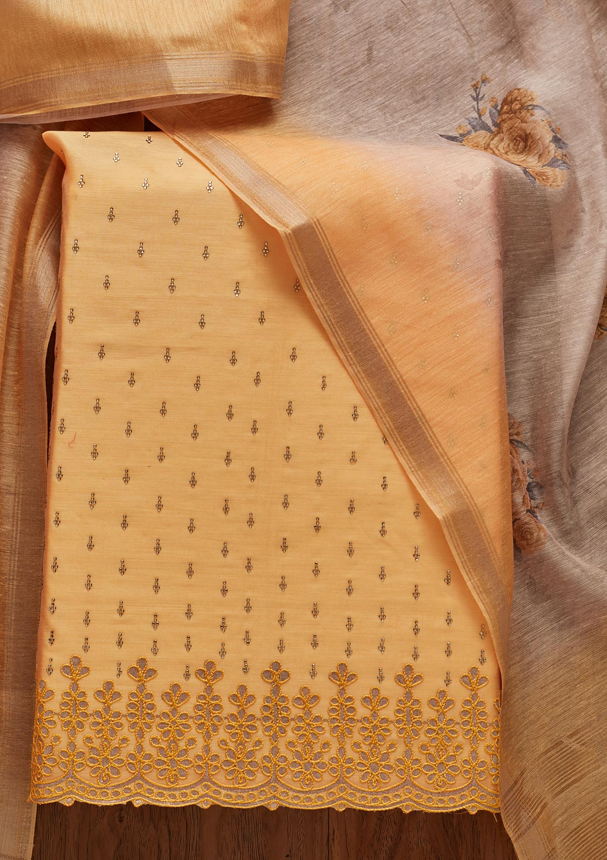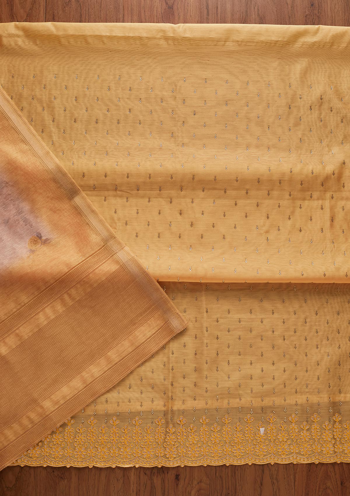 Yellow Swarovski Chanderi Unstitched Salwar Suit