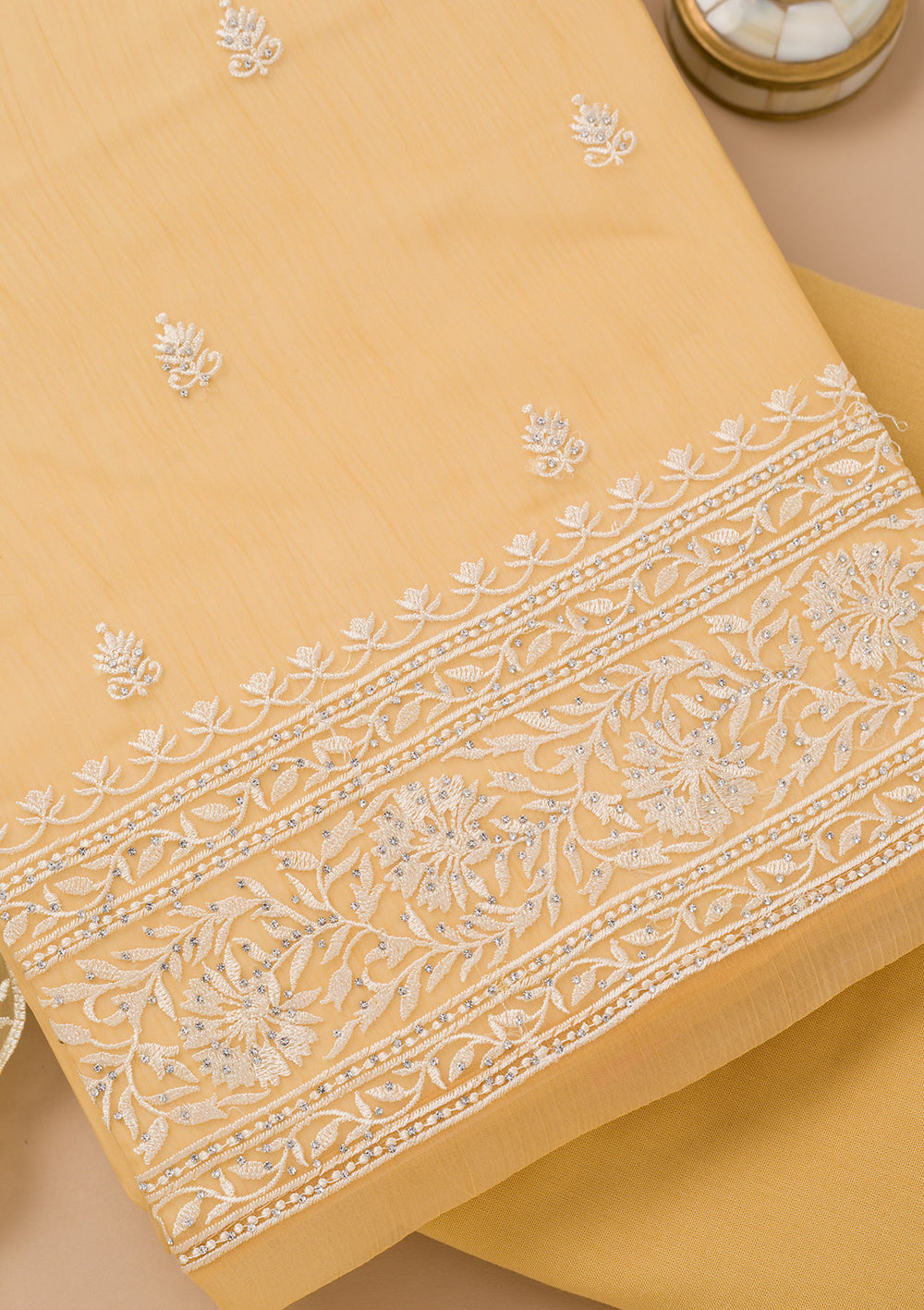 Yellow Threadwork Semi Crepe Unstitched Salwar Suit