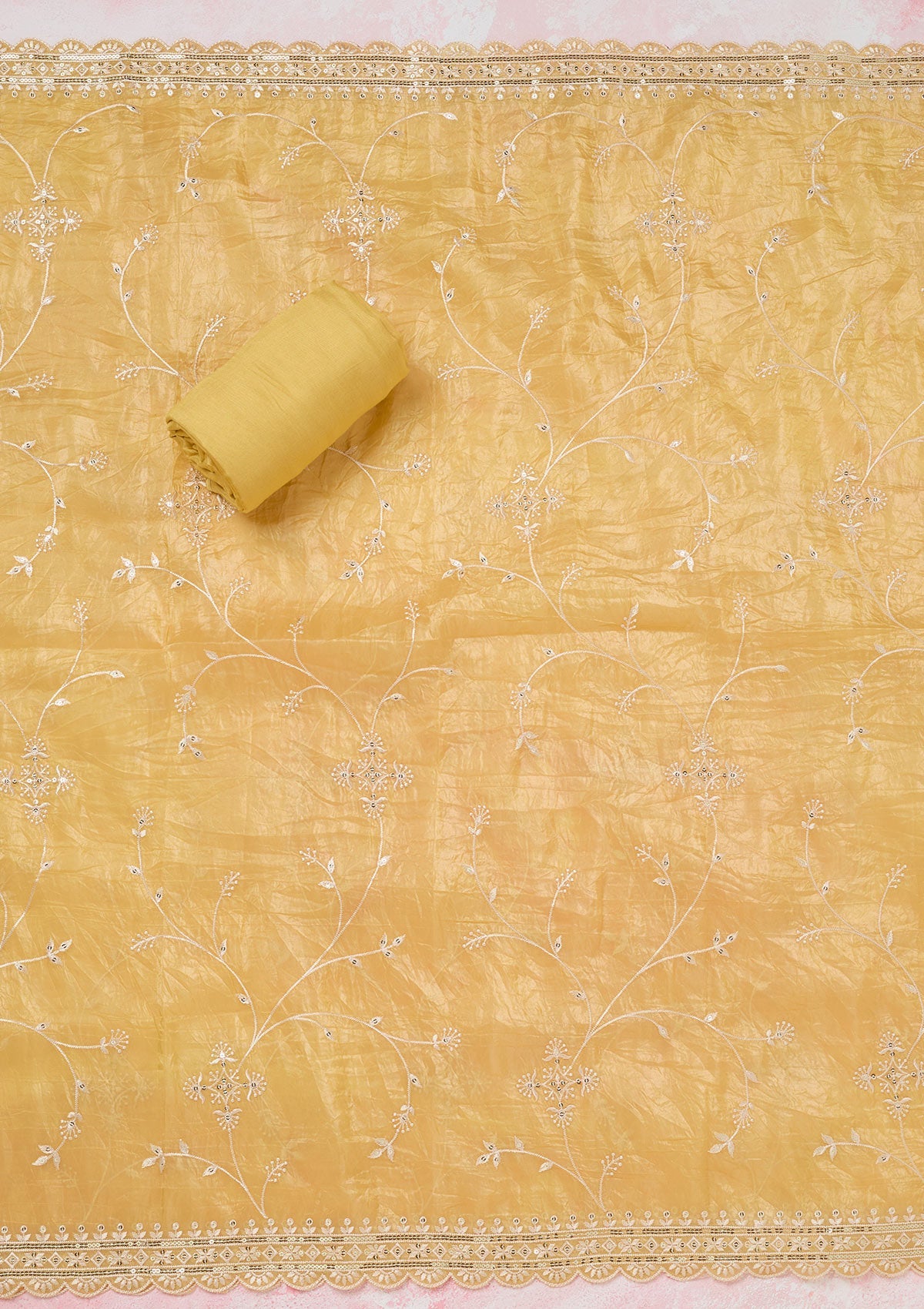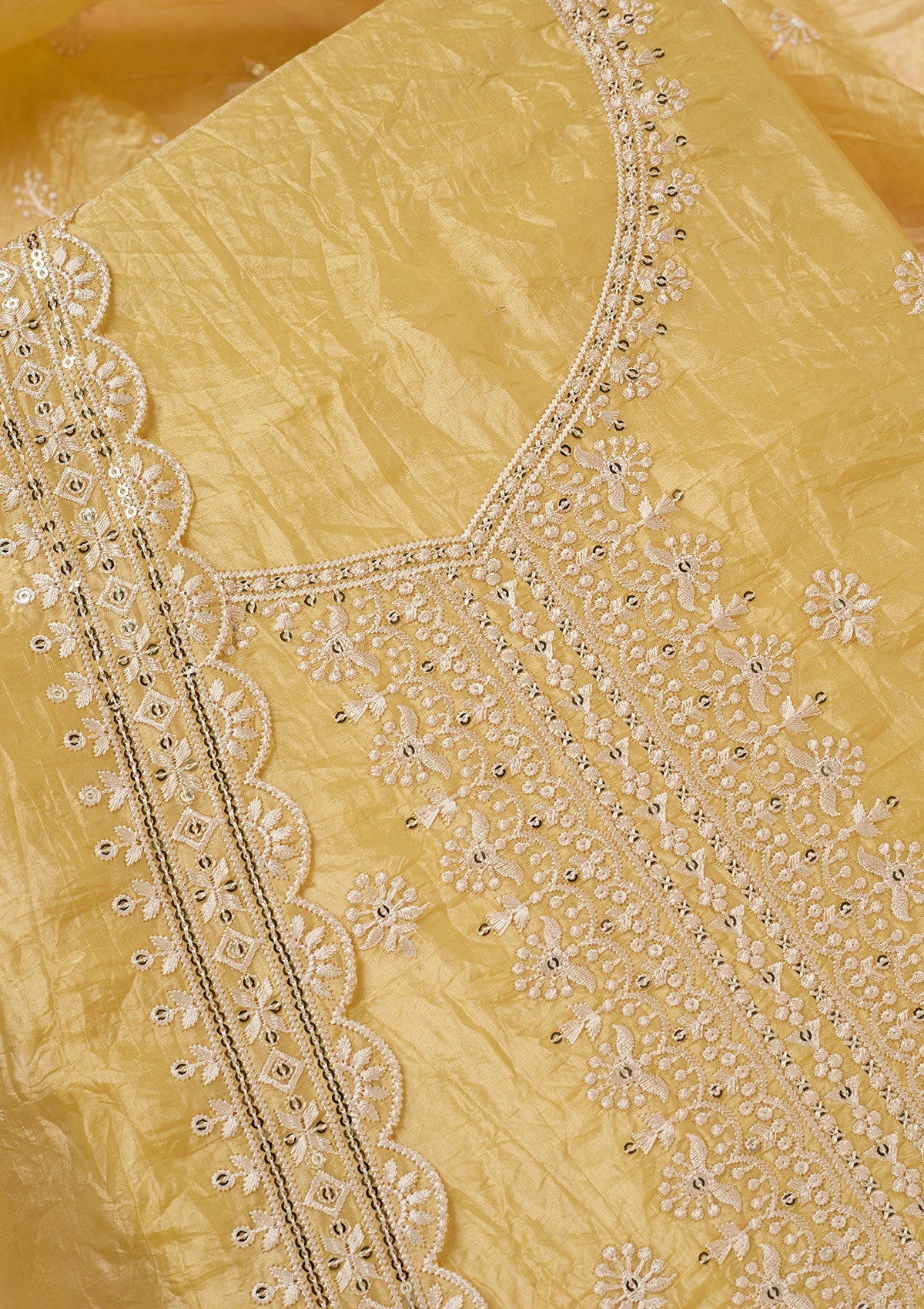 Yellow Threadwork Tissue Unstitched Salwar Suit