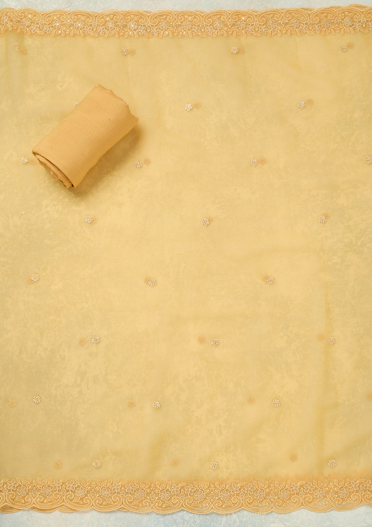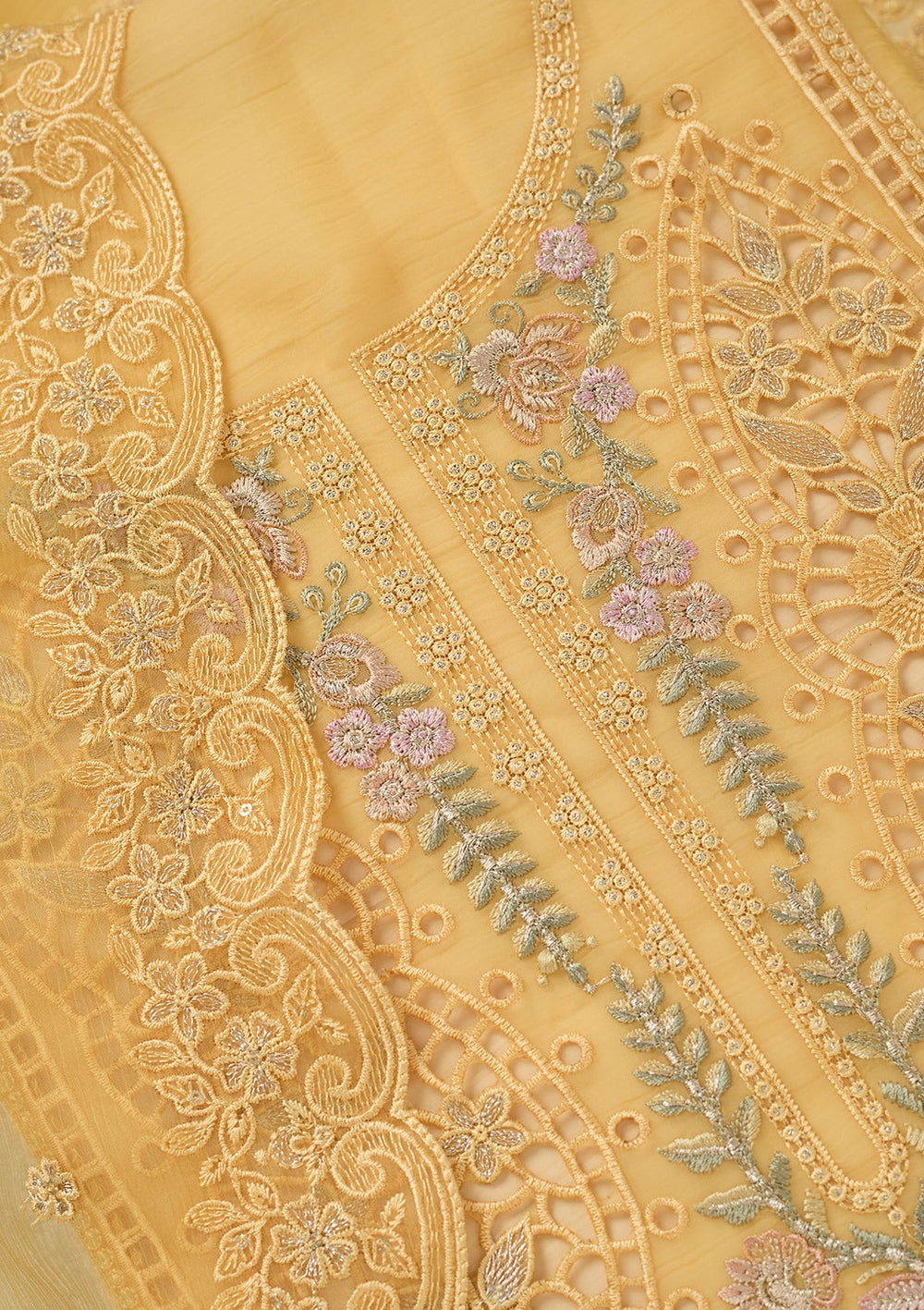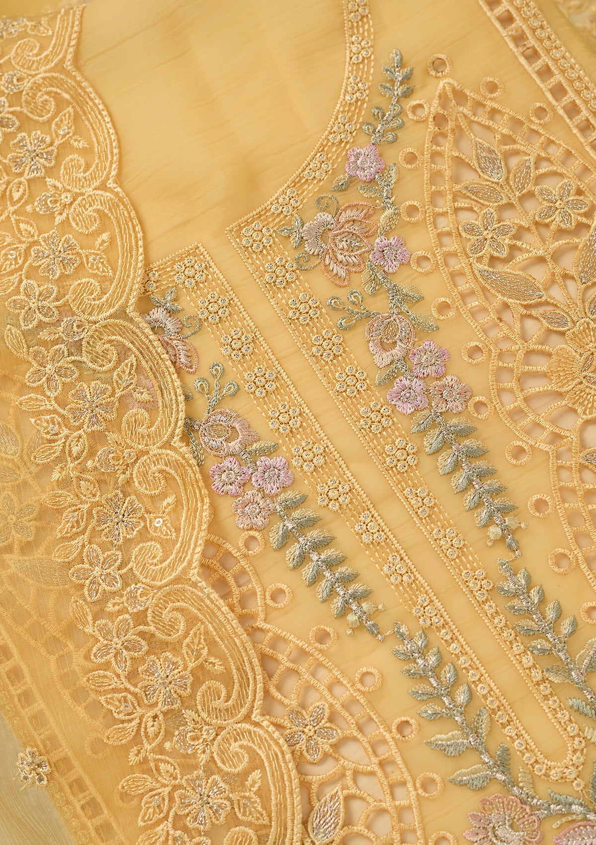 Yellow Threadwork Tissue Unstitched Salwar Suit