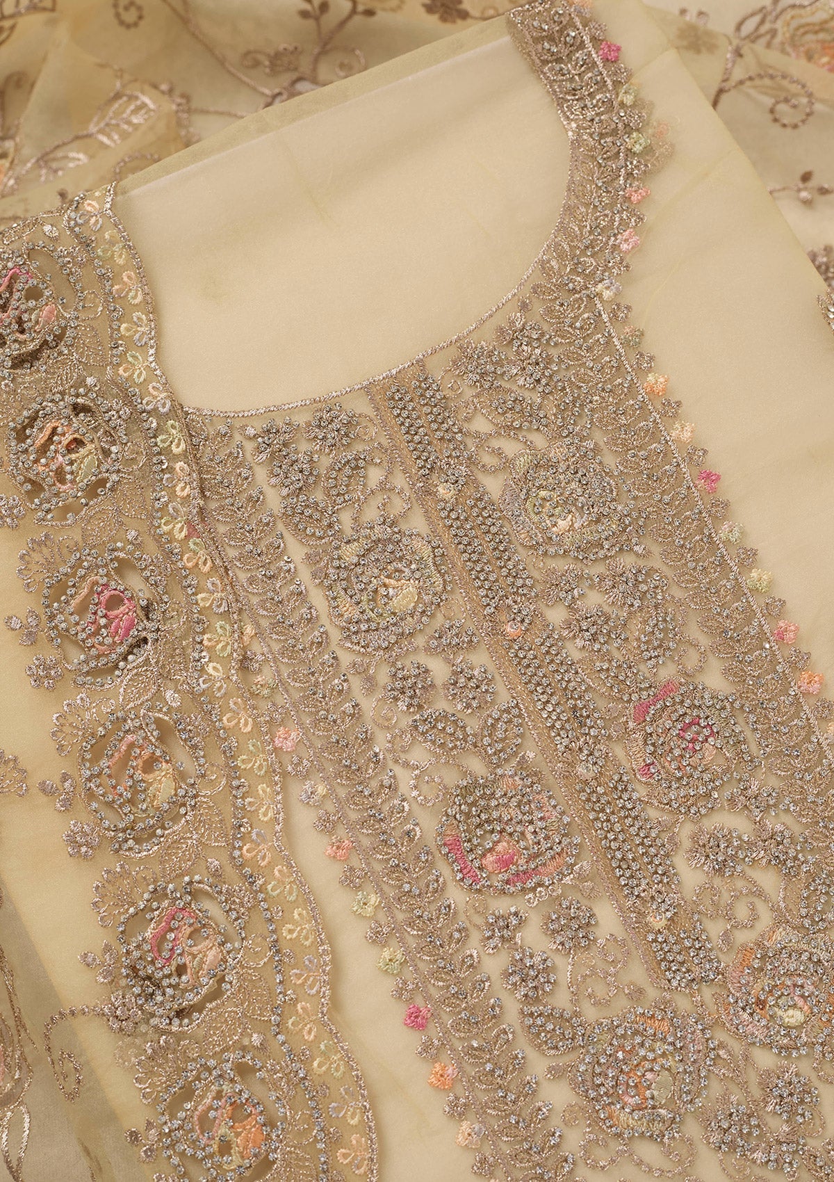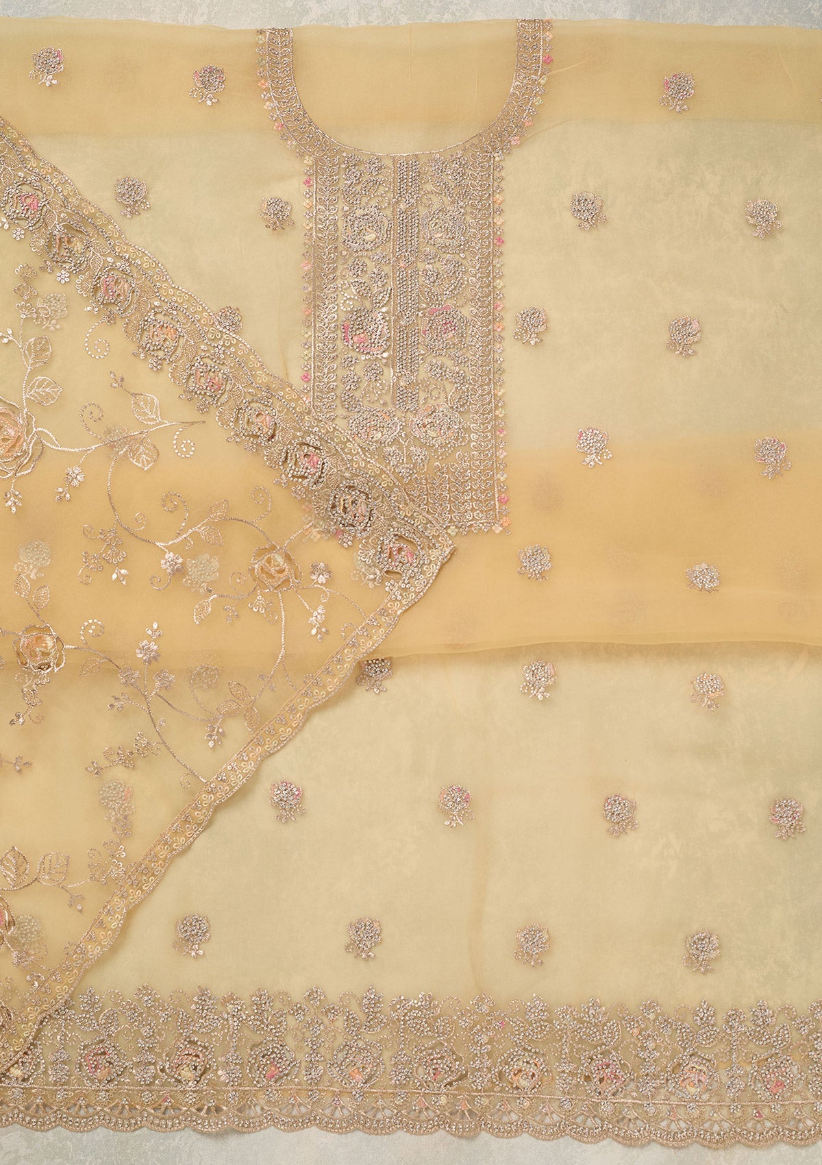 Yellow Zariwork (Gold) Organza Unstitched Salwar Suit