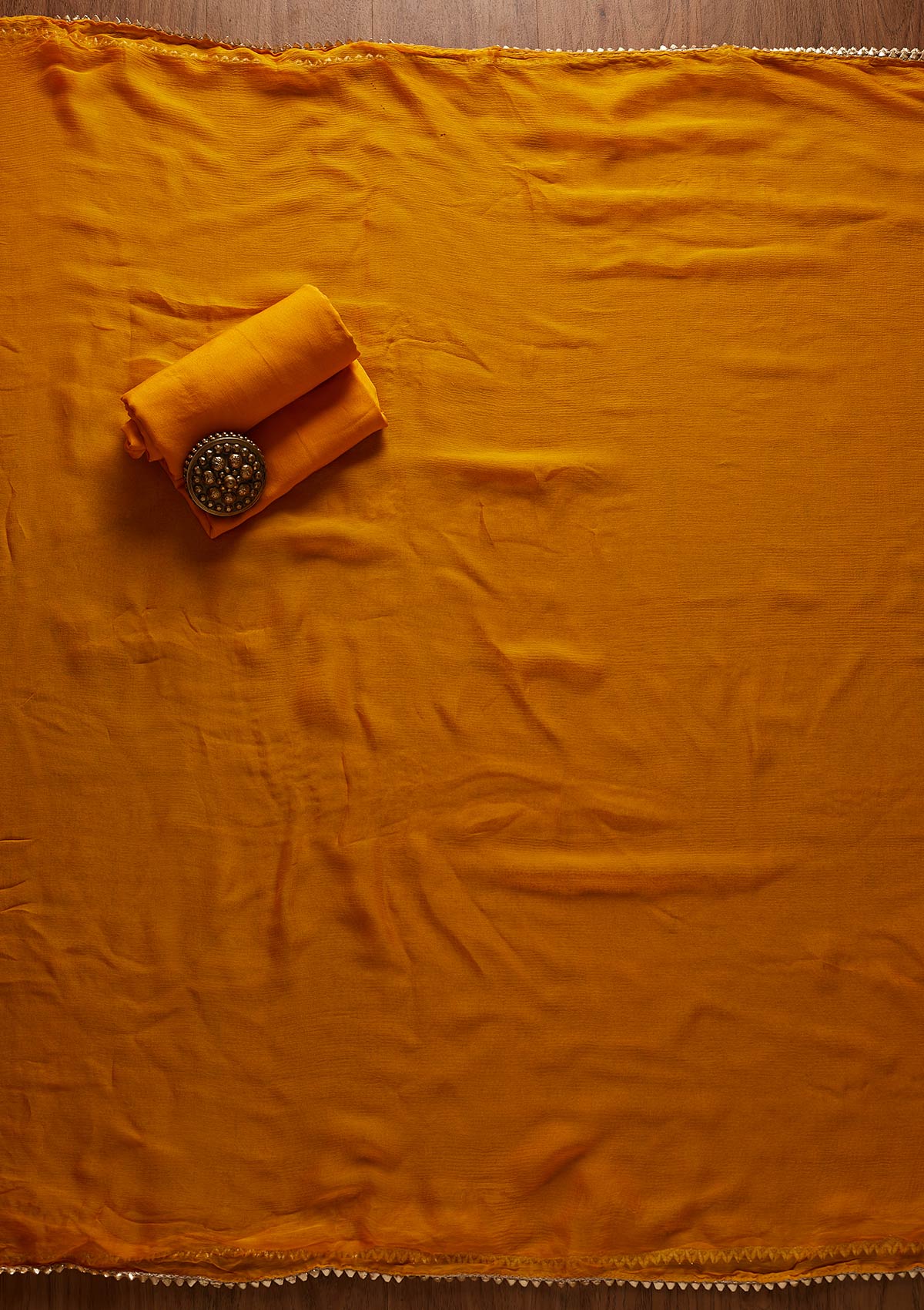 Yellow Salwar Suit In Semi Crepe Fabric. The Salwar Suit Is Embellished With Zariwork Embroidery. Accompanied with an unstitched bottom and dupatta. Comes With The Koskii Promise Of Premium Quality.