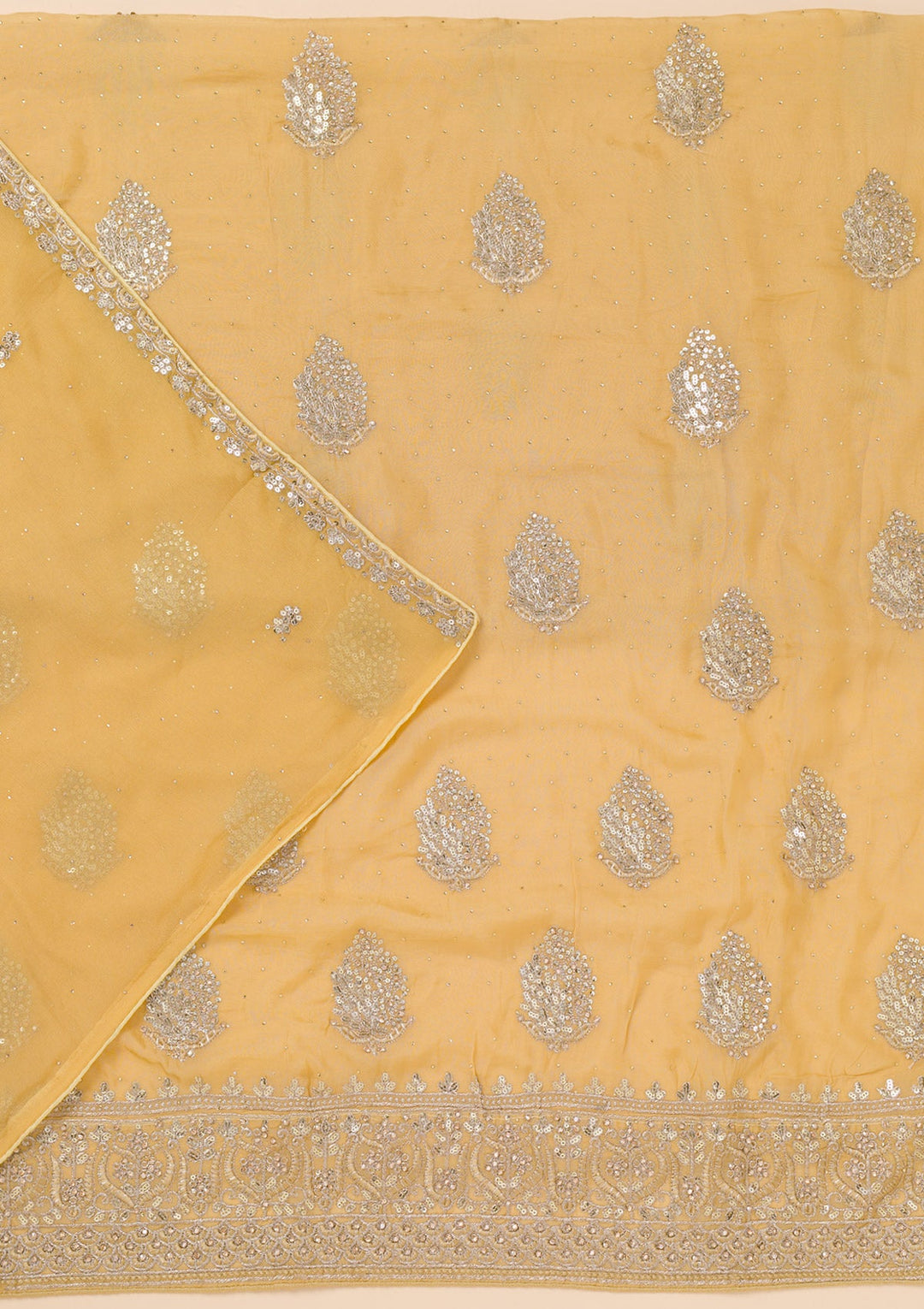 Yellow Salwar Suit in Semi Crepe fabric. The Salwar Suit is embellished with Zariwork embroidery. Accompanied with a bottom and dupatta. Comes with the Koskii promise of premium quality.