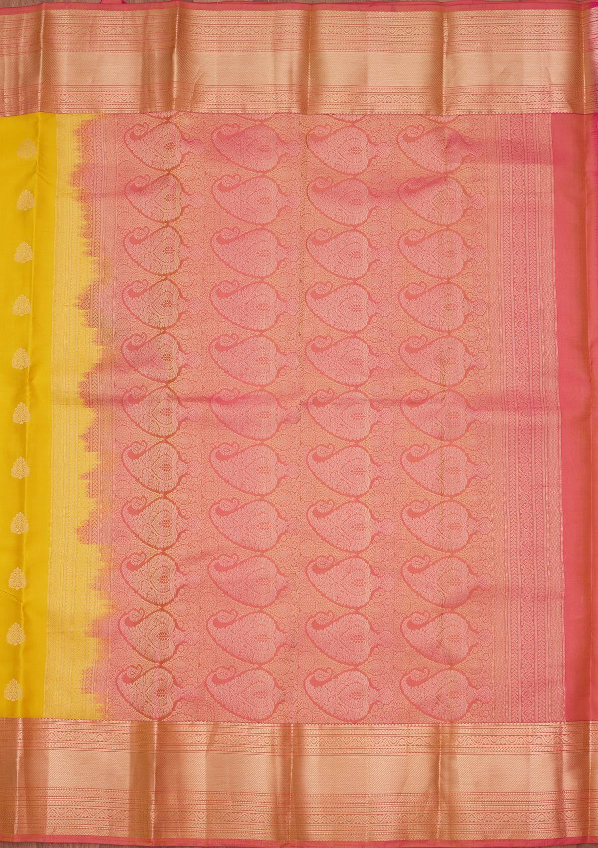 Yellow Silk Saree in Silk fabric. The Silk Saree is elevated with Zariwork embroidery. It comes with an Unstitched blouse. Comes with the Koskii promise of premium quality.