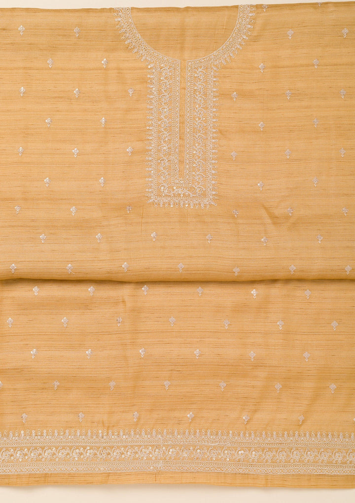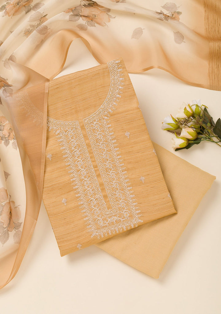 Yellow Zariwork Soft Silk Unstitched Salwar Suit