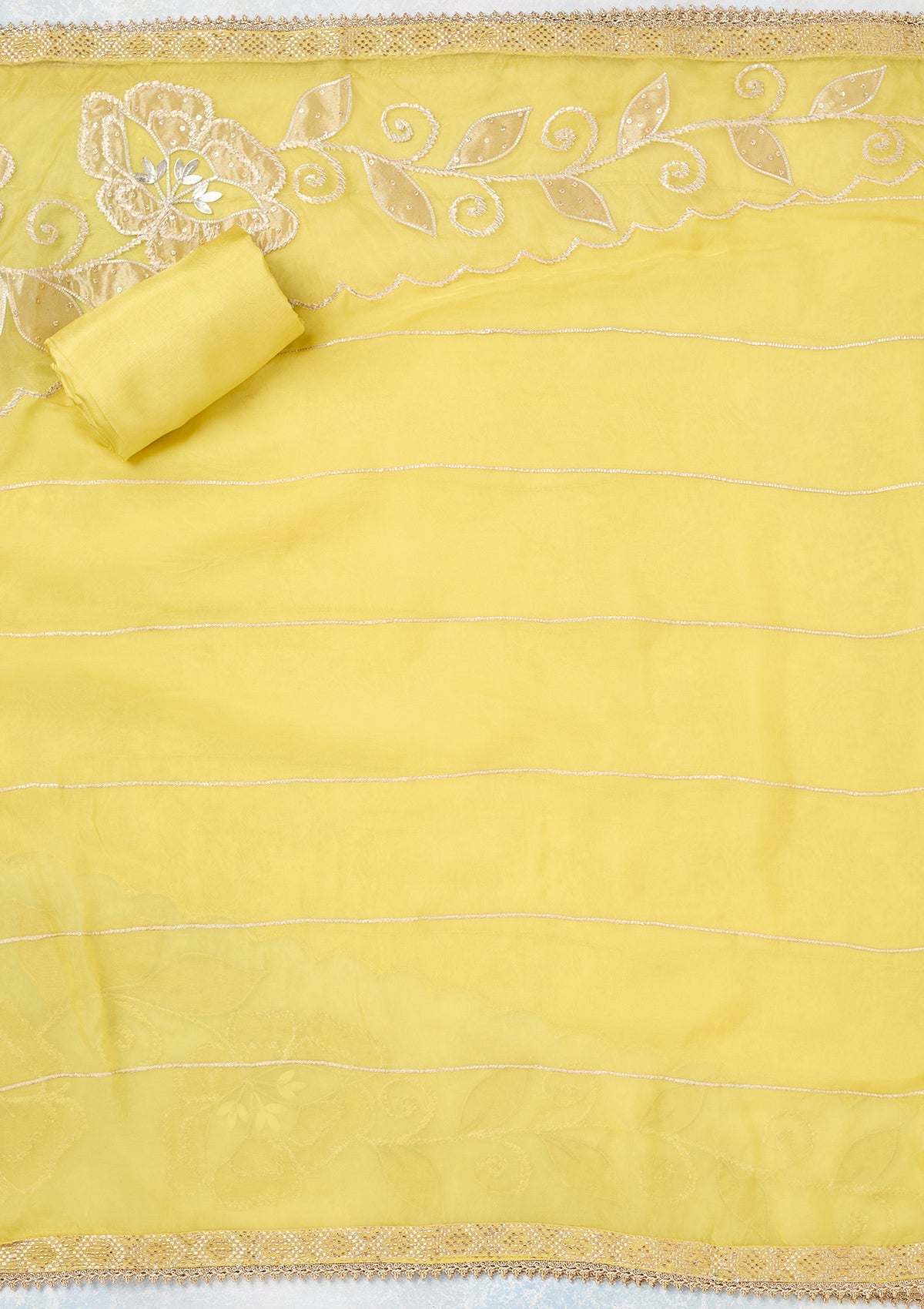 Yellow Salwar Suit in Tissue fabric. The Salwar Suit is embellished with Zariwork embroidery. Accompanied with a bottom and dupatta. Comes with the Koskii promise of premium quality.