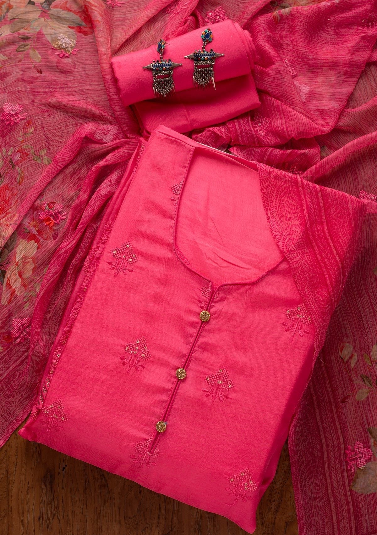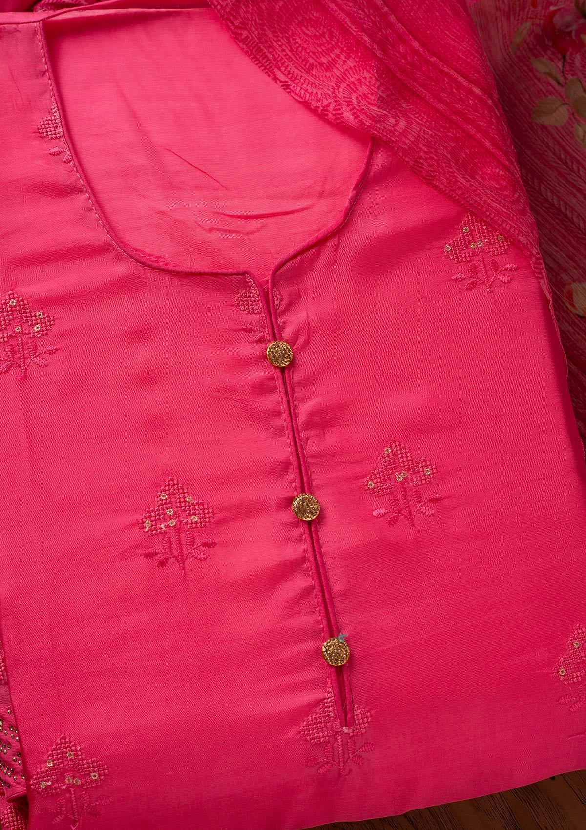 Pink Swarovski Satin Unstitched Salwar Suit