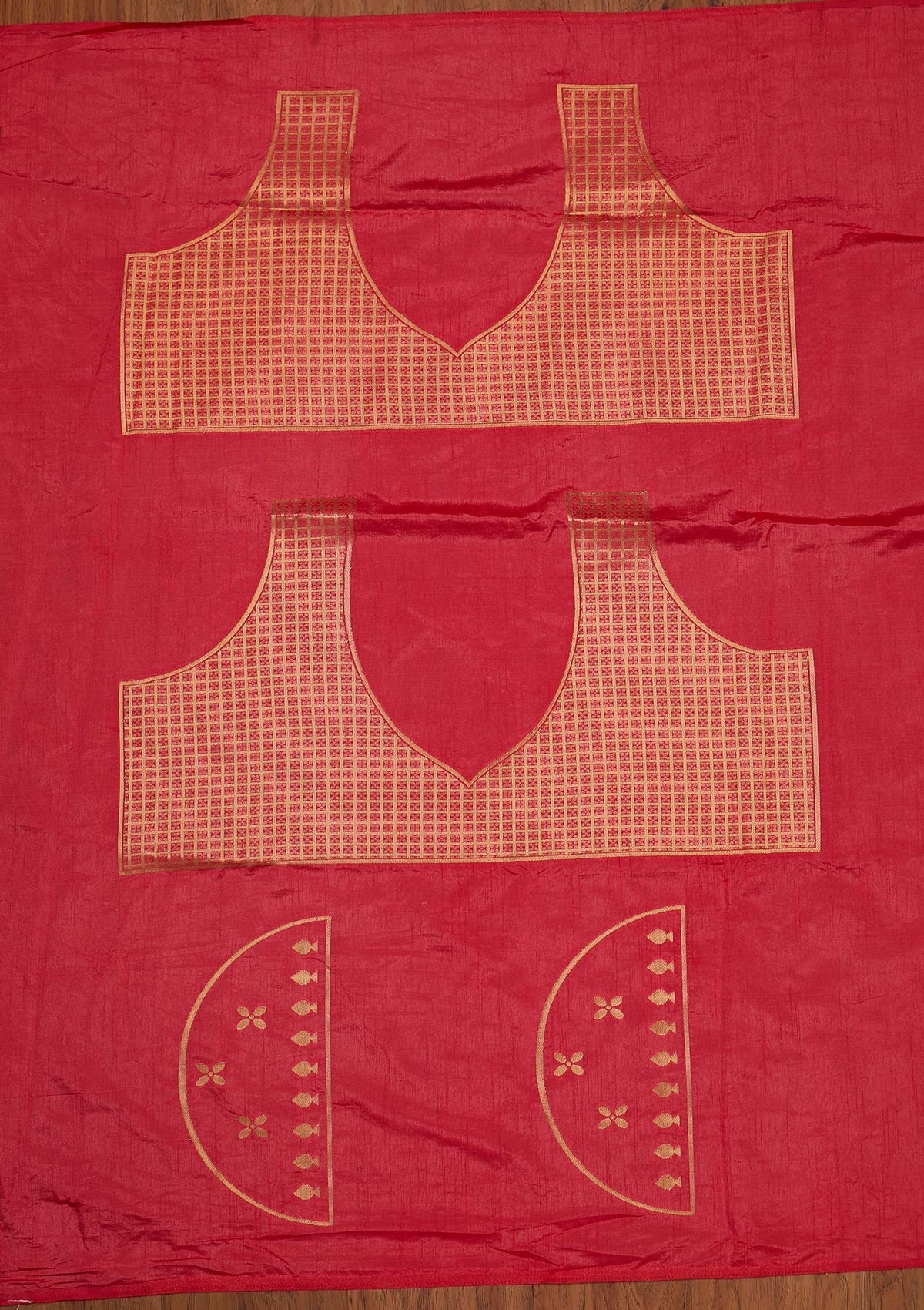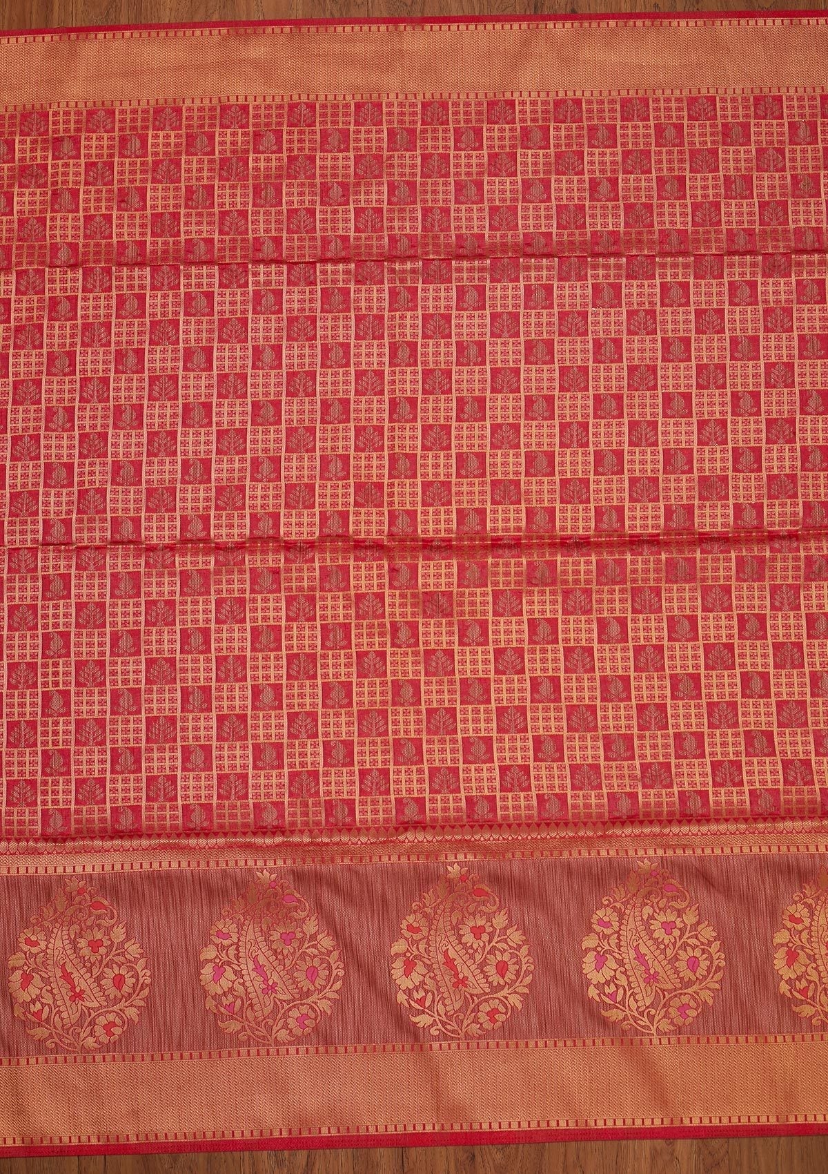 Pink Saree In Raw Silk. The Saree Is Embellished With Subtle Embroidery. Paired With A Matching Unstitched Blouse. Comes With The Koskii Promise Of Superior Quality.
