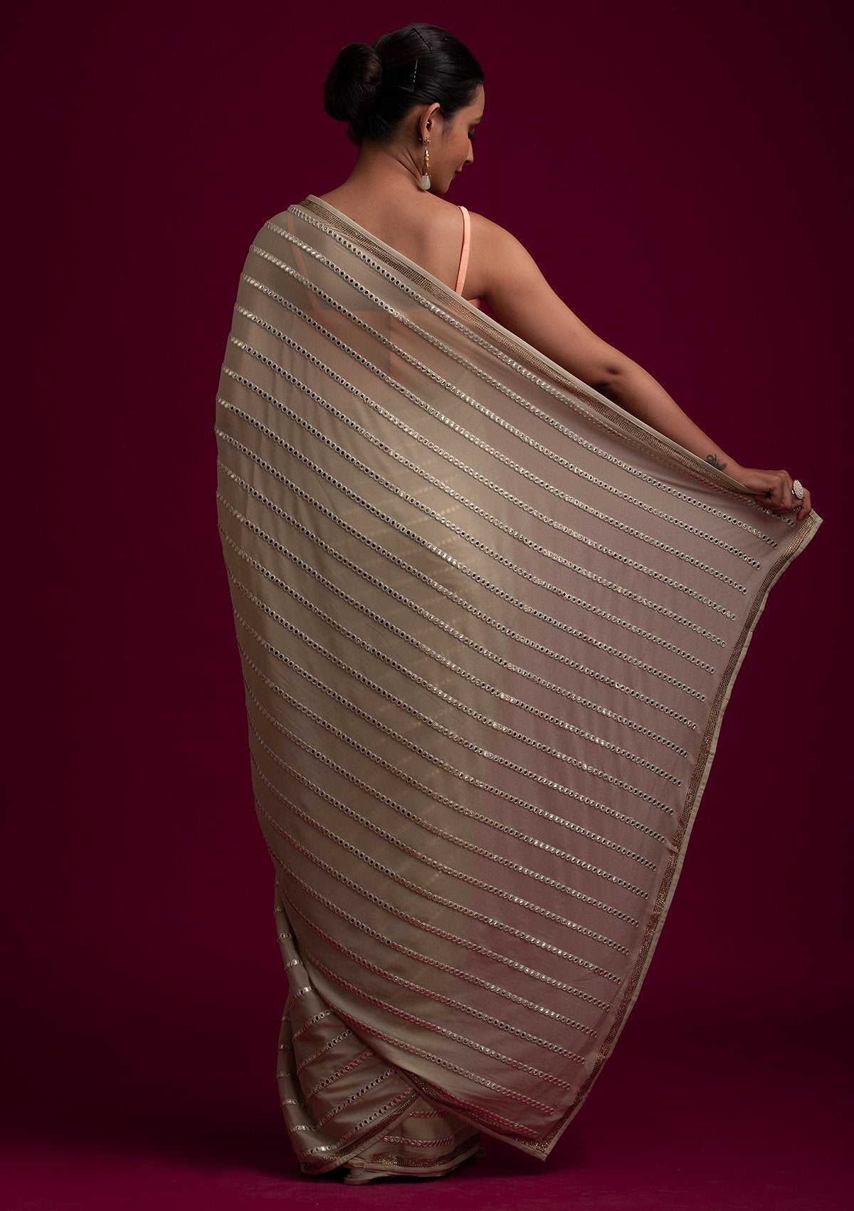 Pista Green Saree In Semi Crepe. The Saree Is Embellished With Gotapatti Embroidery. Paired With A Matching Unstitched Blouse. Comes With The Koskii Promise Of Superior Quality.